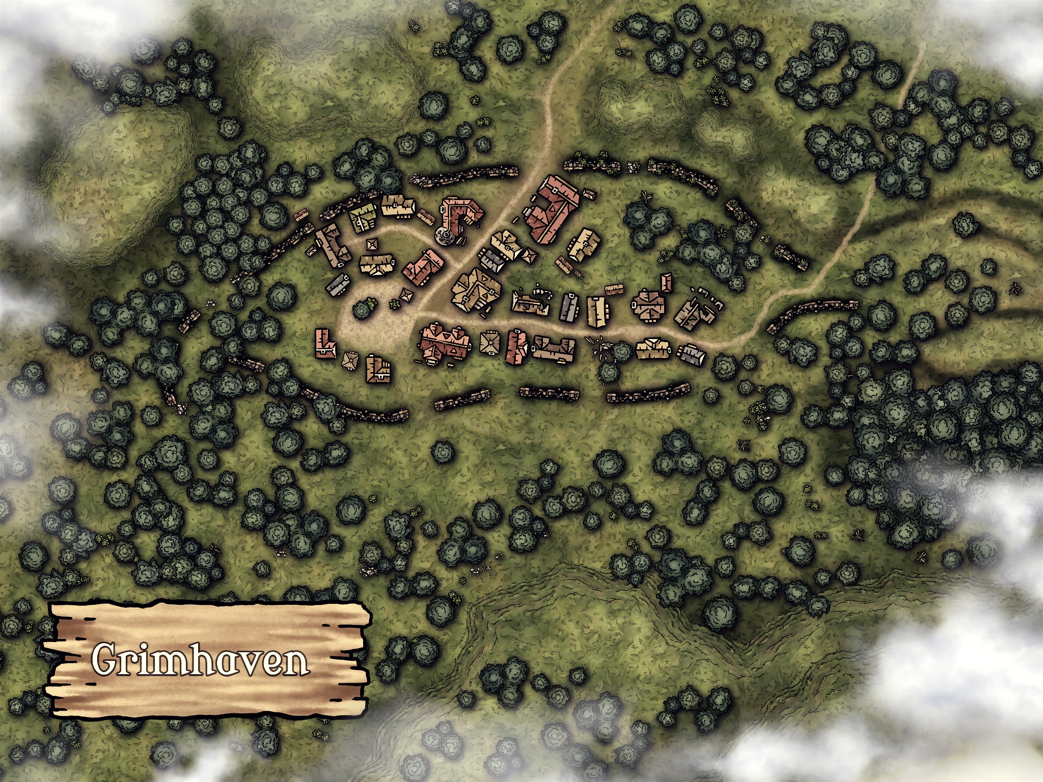 General Information Grimhaven is a town caught in a slow-motion struggle. Unlike the dark, suffocating depths of the deeper woods, Grimhaven sits in a rare thinning of the canopy. Here, the Great Trees stand tall but spaced apart, allowing shafts of golden, dust-mote-filled sunlight to pierce through the leaves. It is a place of dappled shadows and ancient stone, where the line between civilization and the wild has blurred into a tangle of green and grey. The town is defined by its Ancient City Walls. Once high and imposing, they are now weathered by centuries of damp and rot. They aren't the towering bastions they once were; instead, they are low, crumbling structures completely surrendered to the forest. Thick ivy, strangler vines, and pale moss drape over the battlements like a living shroud, making the town look as though it grew out of the earth rather than being built upon it. Because of the thinning canopy, the air in Grimhaven is warmer and brighter than the "High Bitterlands" outside, but it carries a humid, heavy scent of blooming wildflowers, damp wood, and ancient decay. Life in Grimhaven Life in Grimhaven is harsh but honest. The people rise with the birds, work until the shadows stretch long, and share meals around large communal hearths. Their faith in the Flame is genuine but tempered: